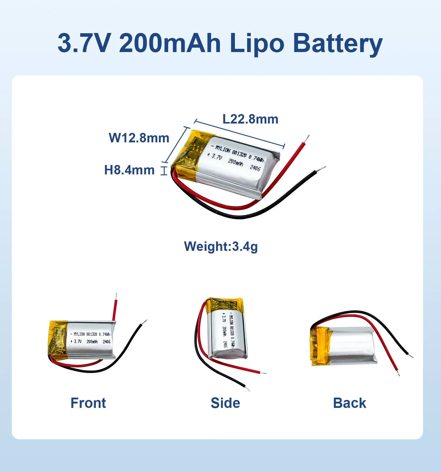 | Nombre del producto | Batería de polímero de litio 3,7 V 200 mAh 801320 |