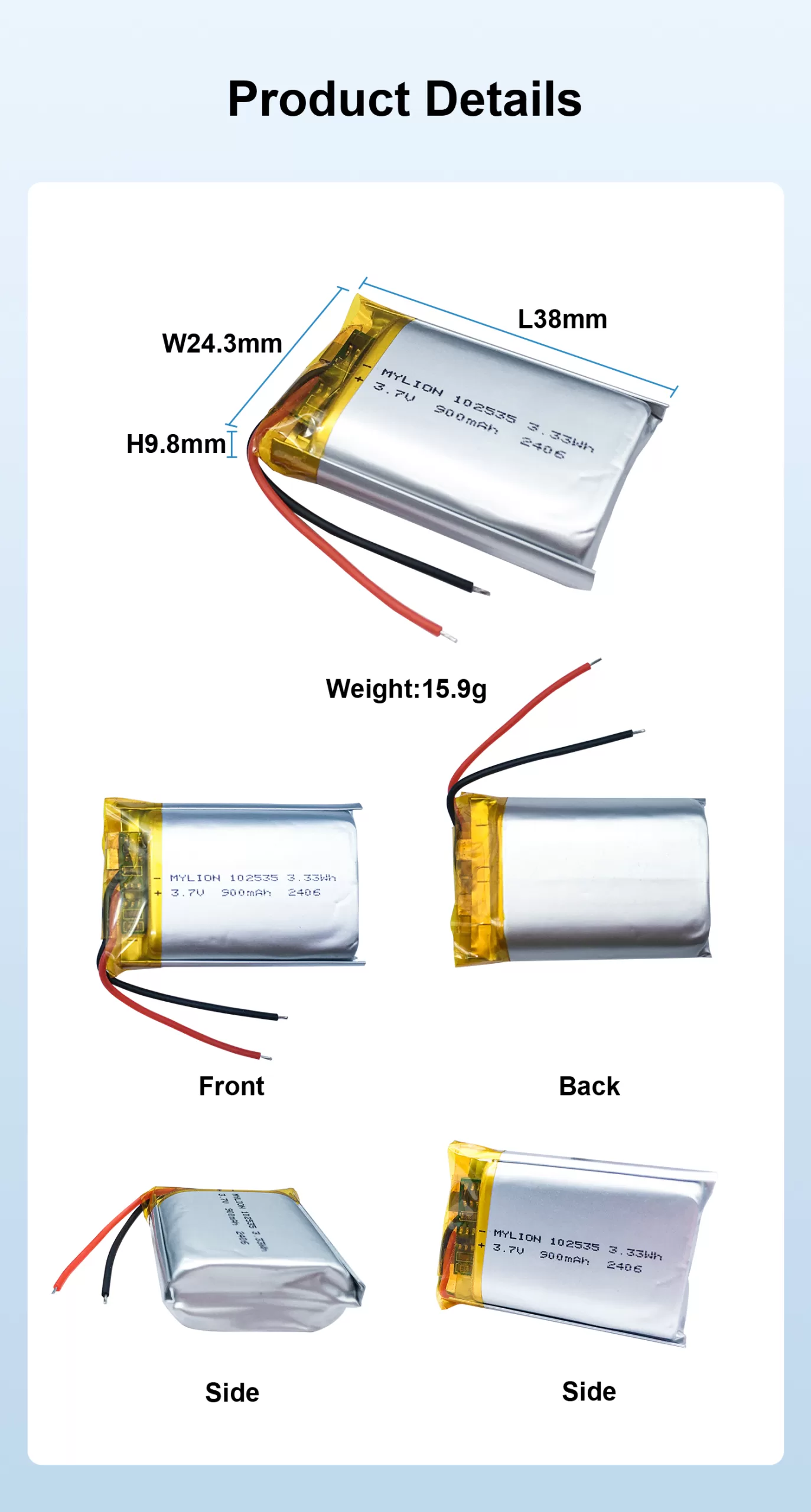 Nombre del producto Batería de polímero de litio 3,7 V 900 mAh