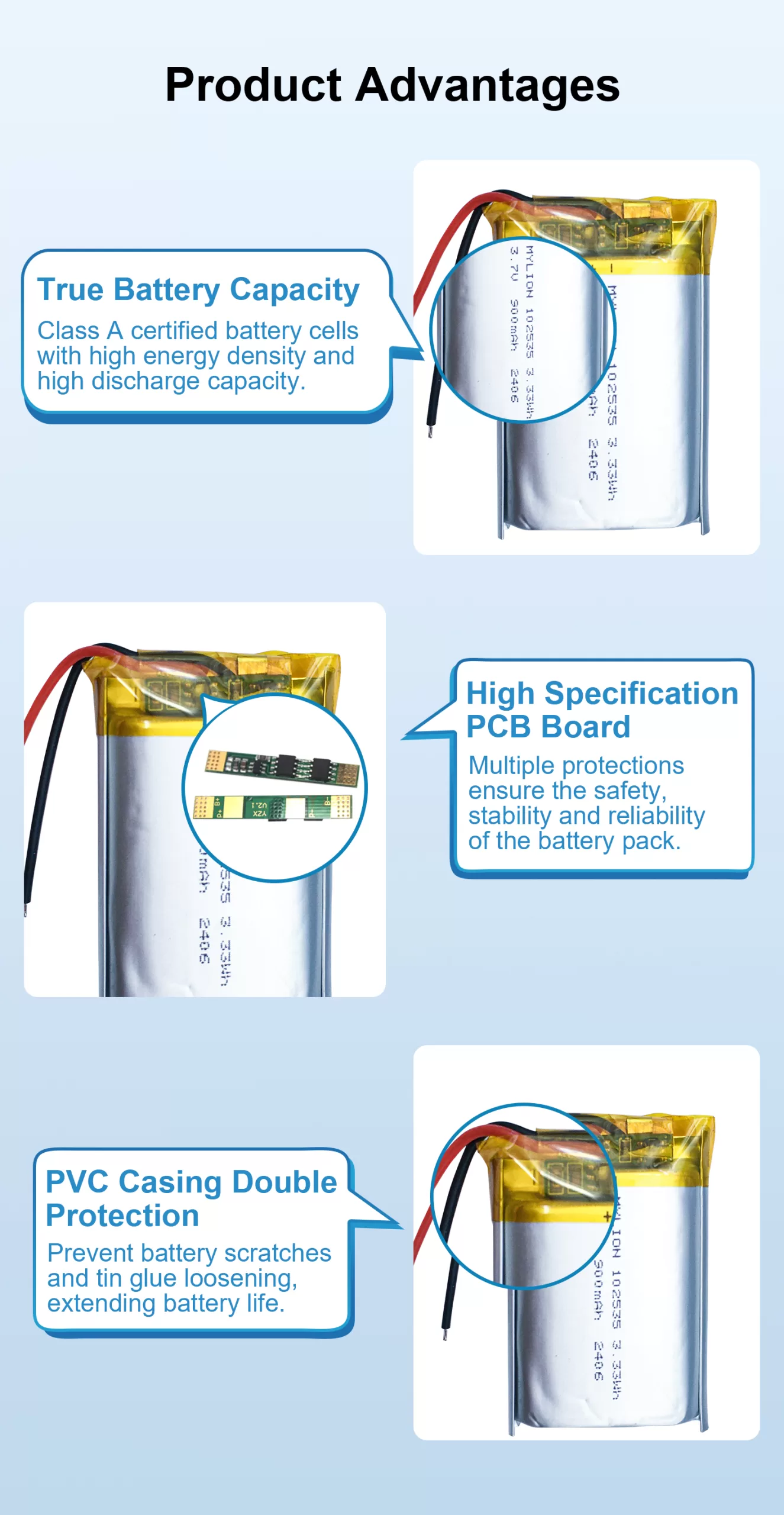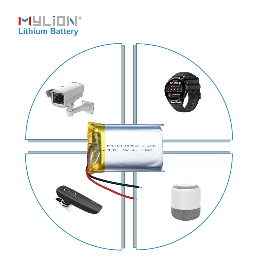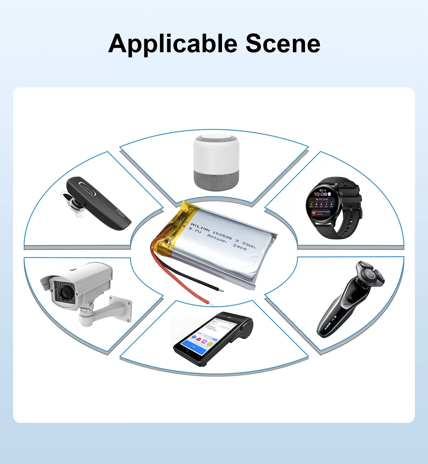 Batería de polímero de litio de 3,7 V y 900 mAh para dispositivos Bluetooth y productos electrónicos de consumo