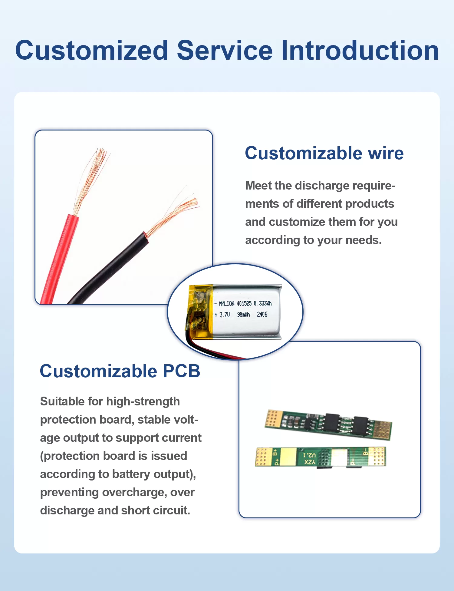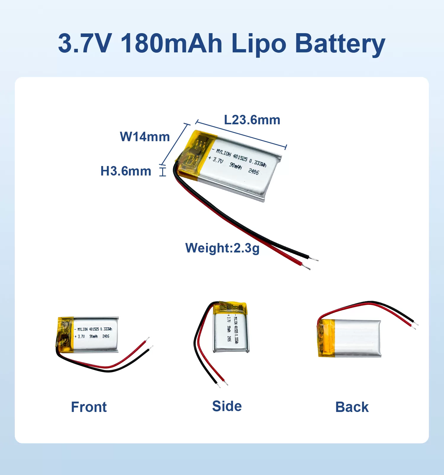 | Nombre del producto | Batería de polímero de litio 3,7 V 90 mAh 401525 |
