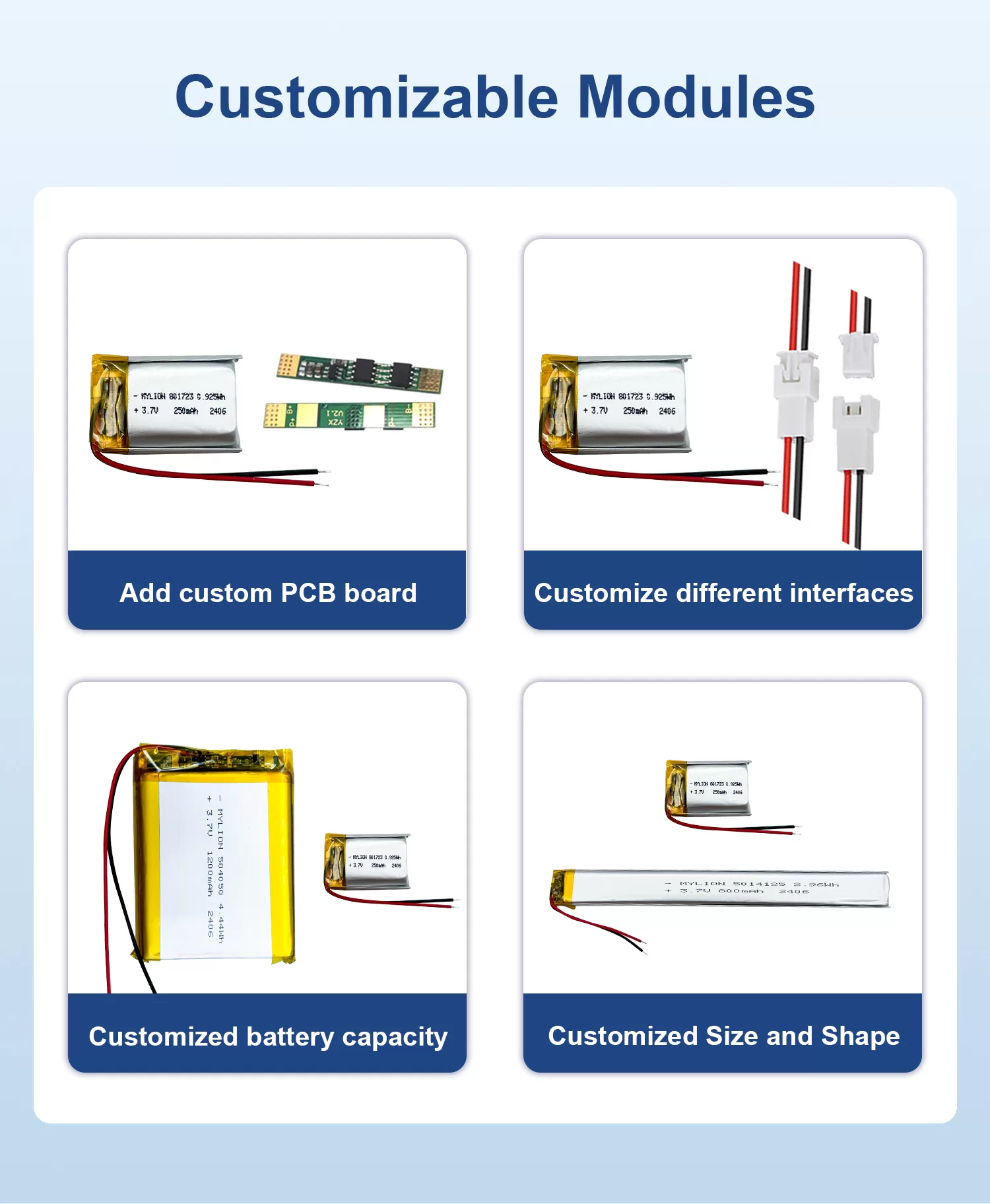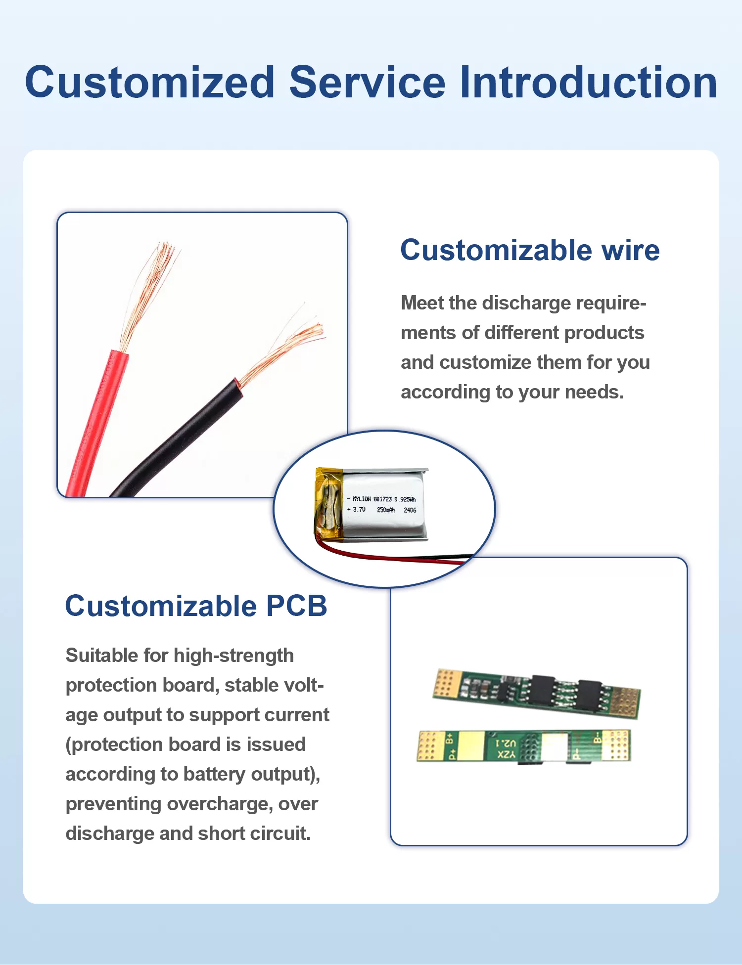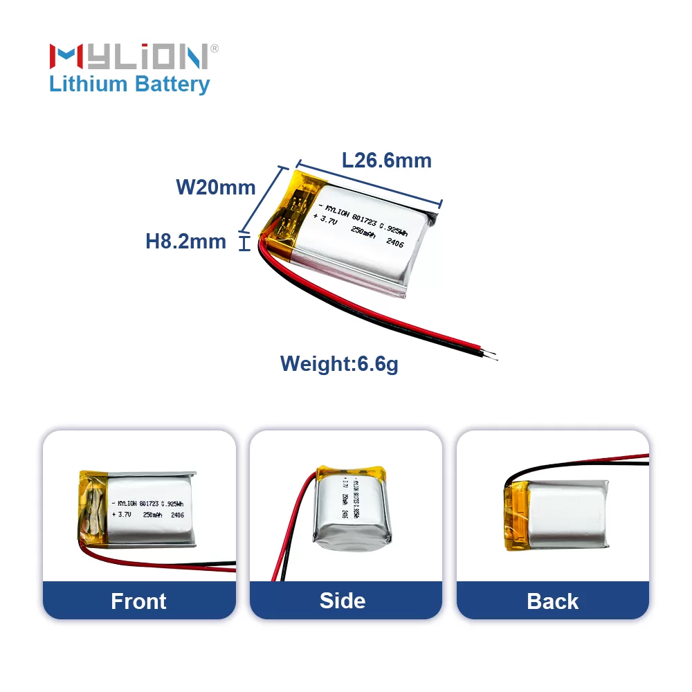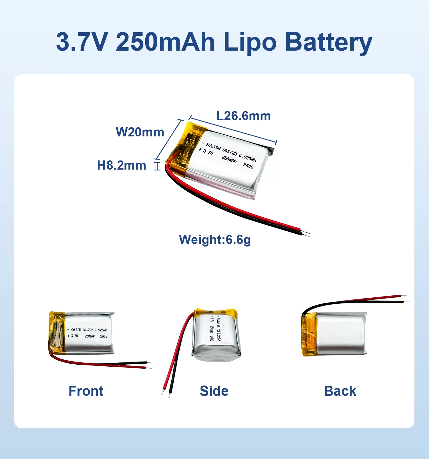 | Nom du produit | Batterie lithium-polymère 3,7 V 250 mAh 801723 |