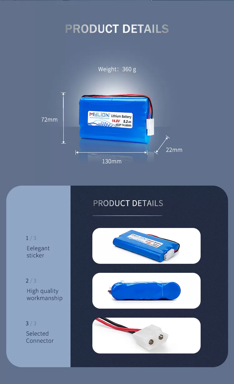 14.8V 5200mAh Lithium ion Battery Pack 76.96Wh for Medical Solar and Outdoor Devices