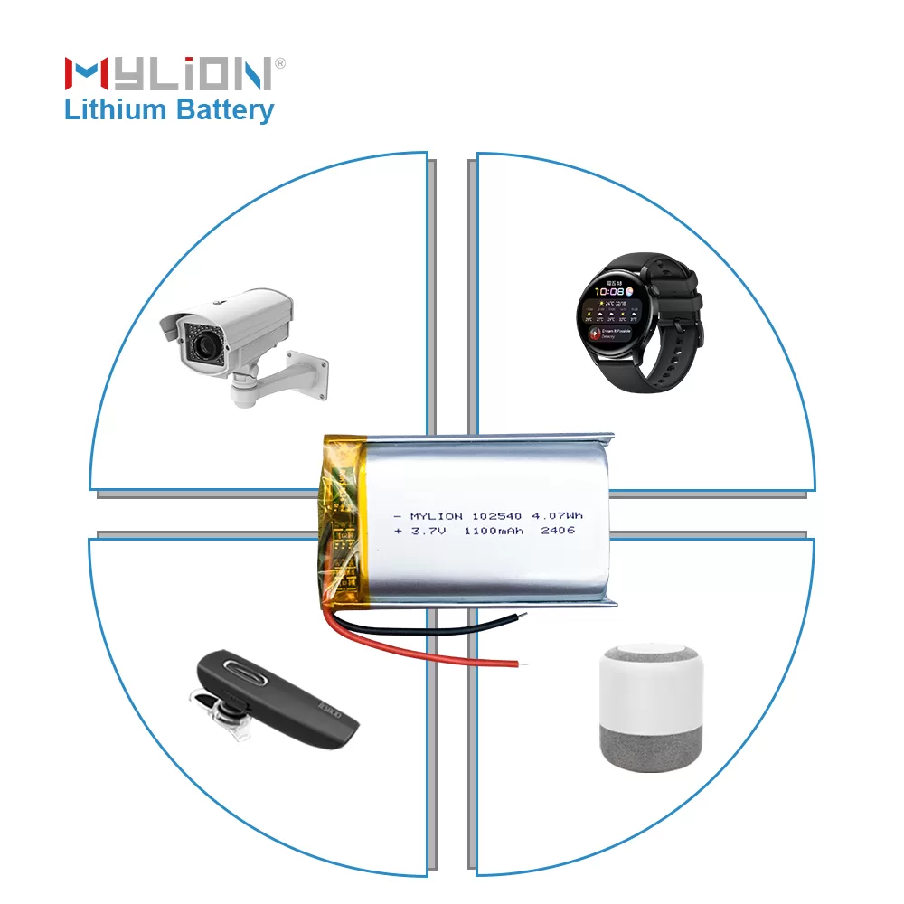 3.7V 1100mAh Li-Polymer Battery 102540 for Bluetooth Devices and Consumer Electronics