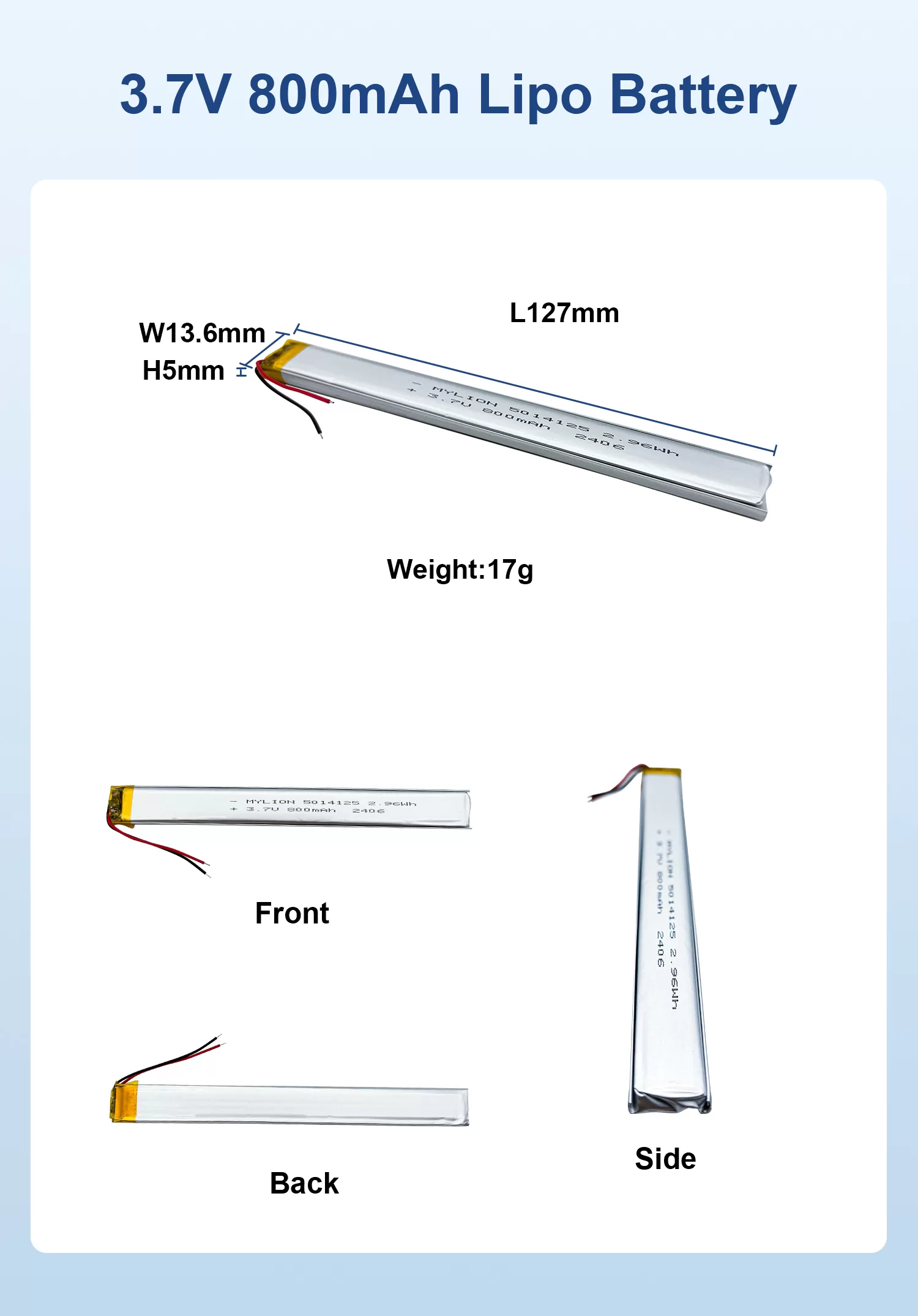 | Product name | Lithium polymer battery 3.7V 800mAh 5014125 |