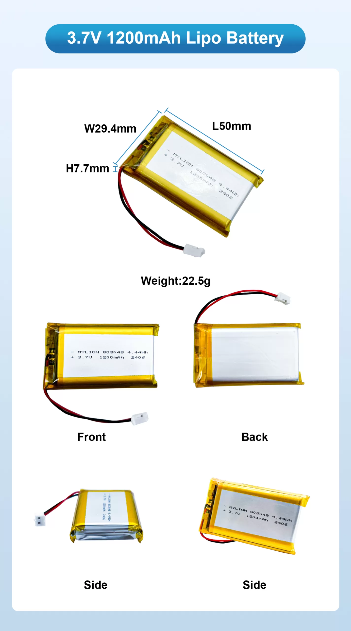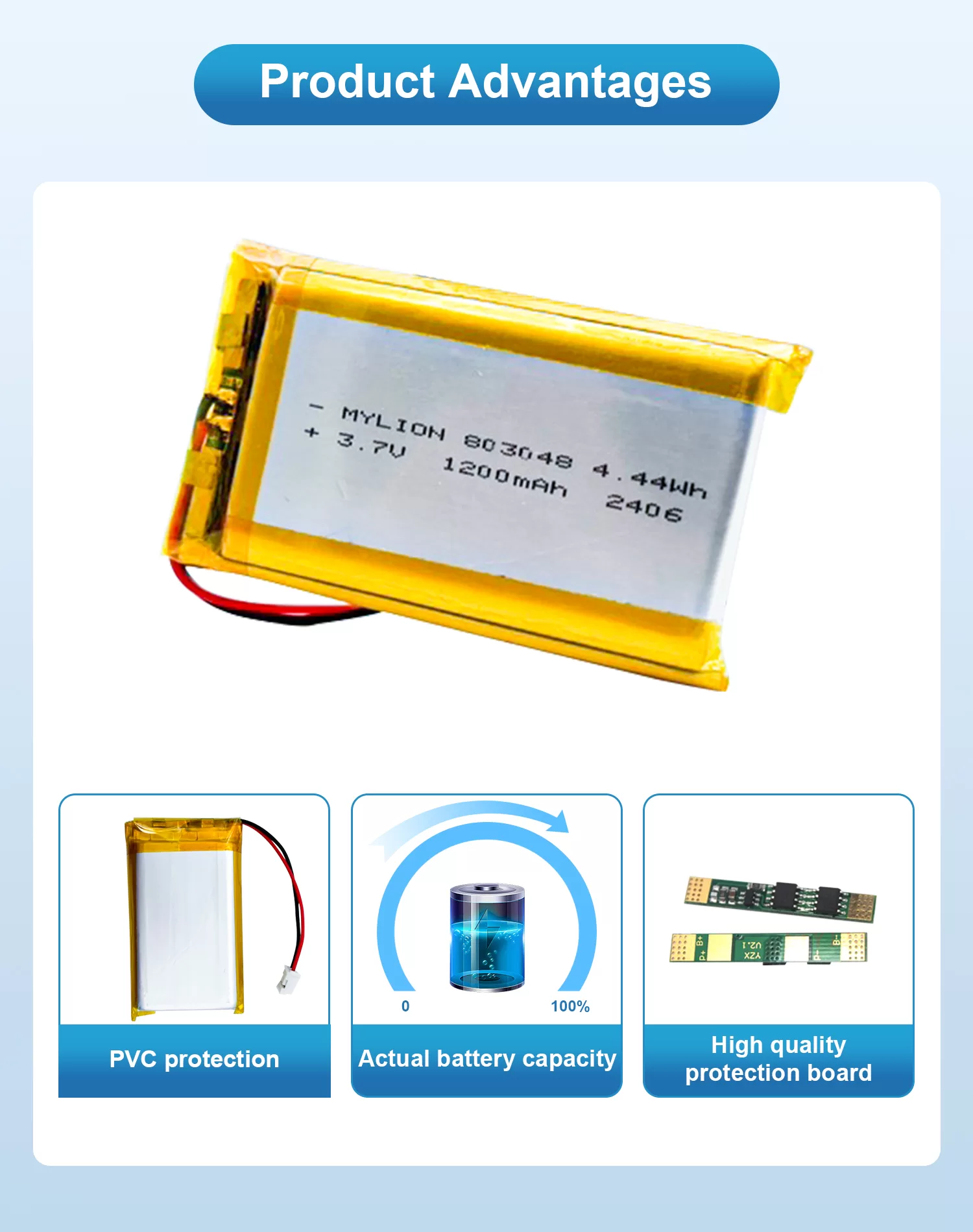 | Product name | Lithium polymer battery 3.7V 1200mAh 803048 |