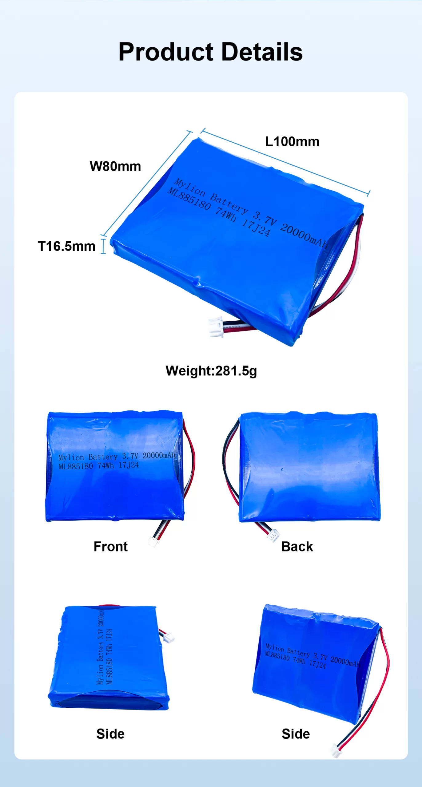 | Battery dimension | L100xW80xH16.5mm |
