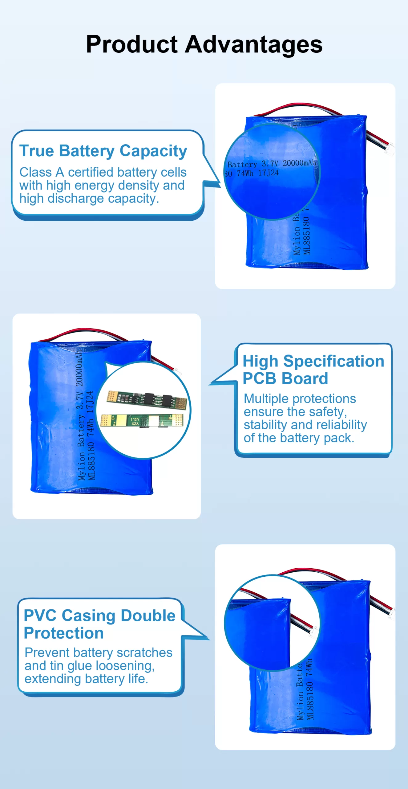 | Product name | Lithium polymer battery 3.7V 20000mAh 885180 |