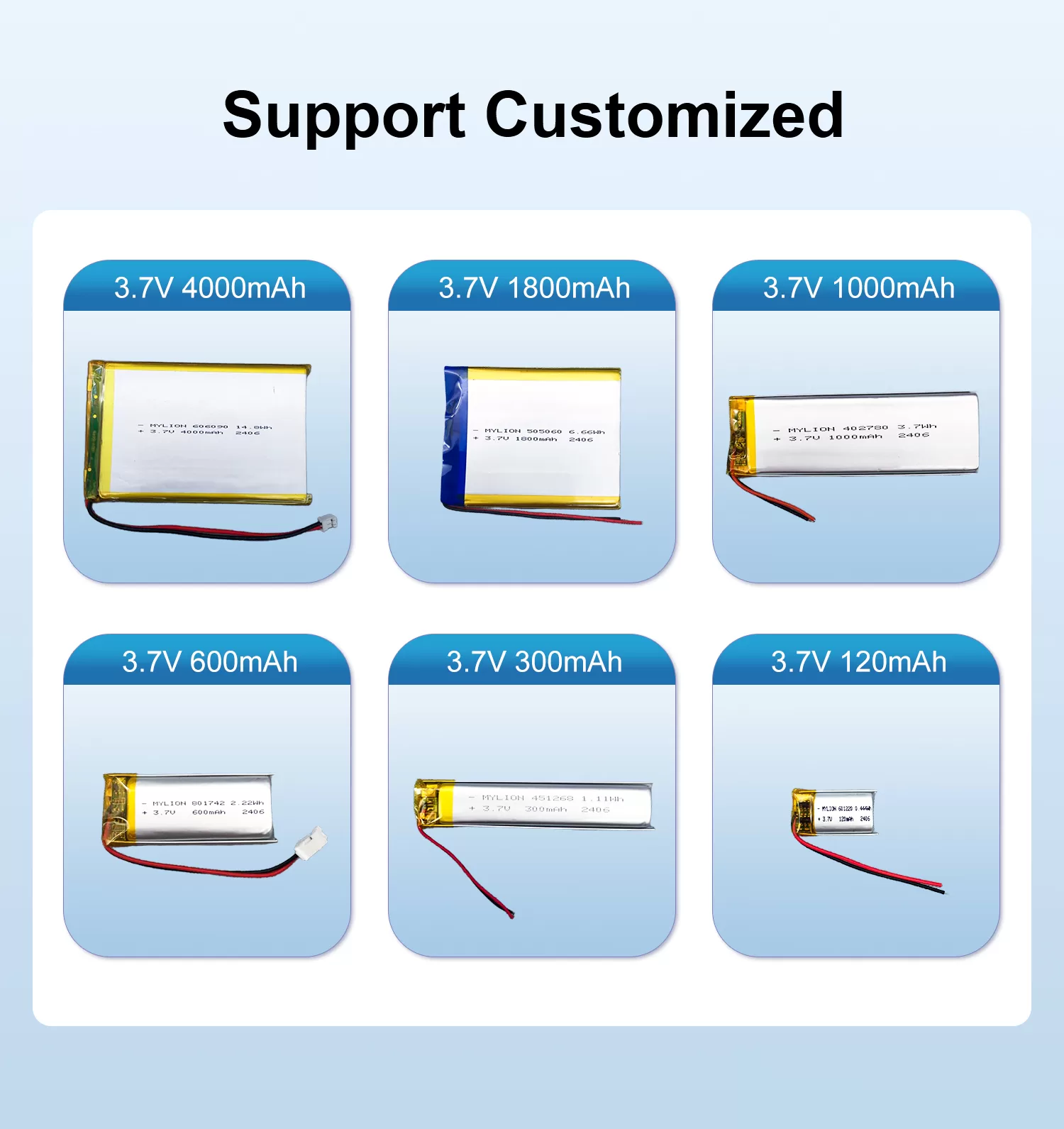 | Cycle life | standard charge&discharge capacity ≥80% C5mAh ,cycle life ≥600 |