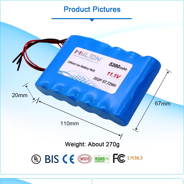 Mylion Durable 11.1V 5200mAh Lithium Ion Battery Pack 57.72Wh