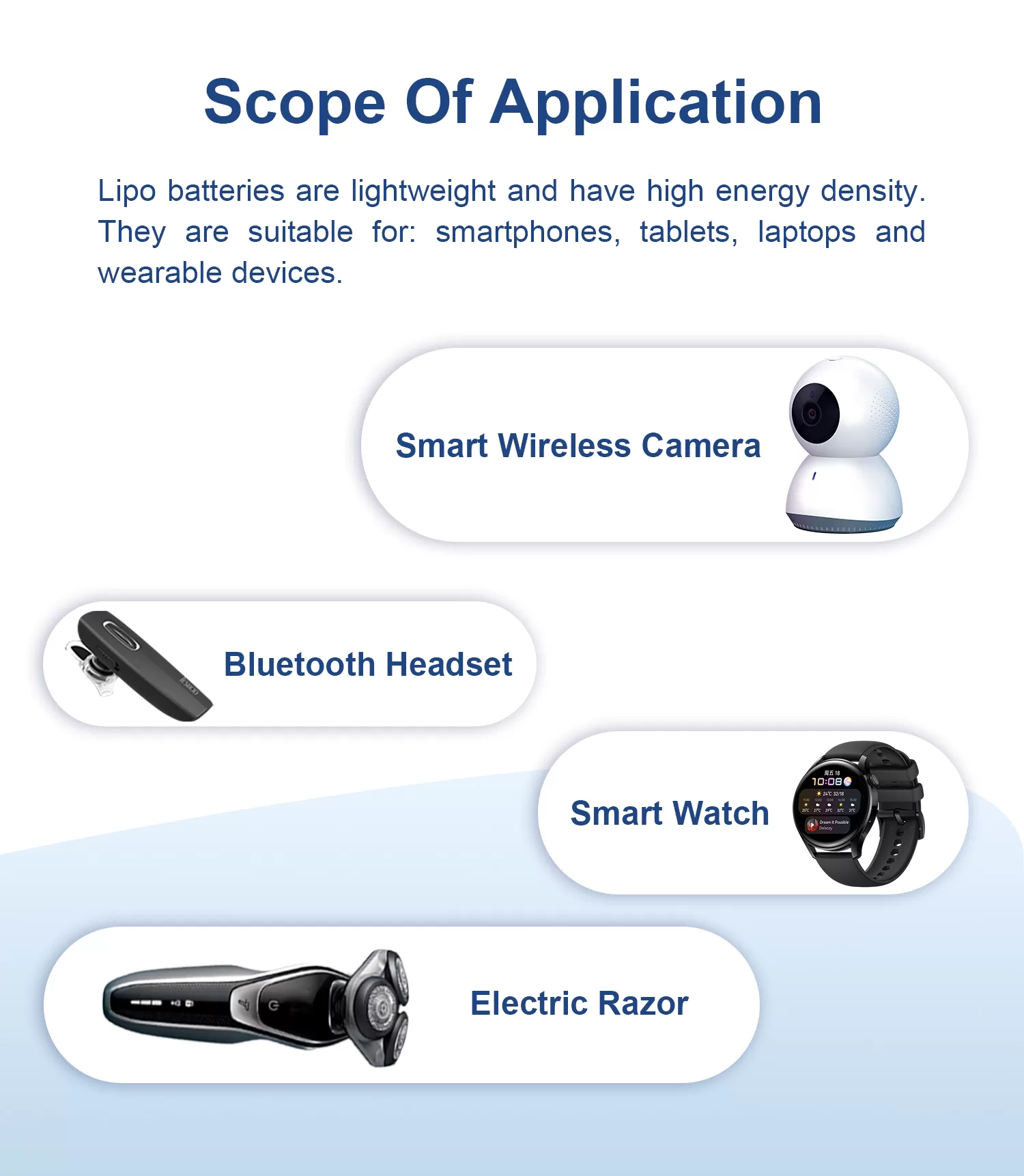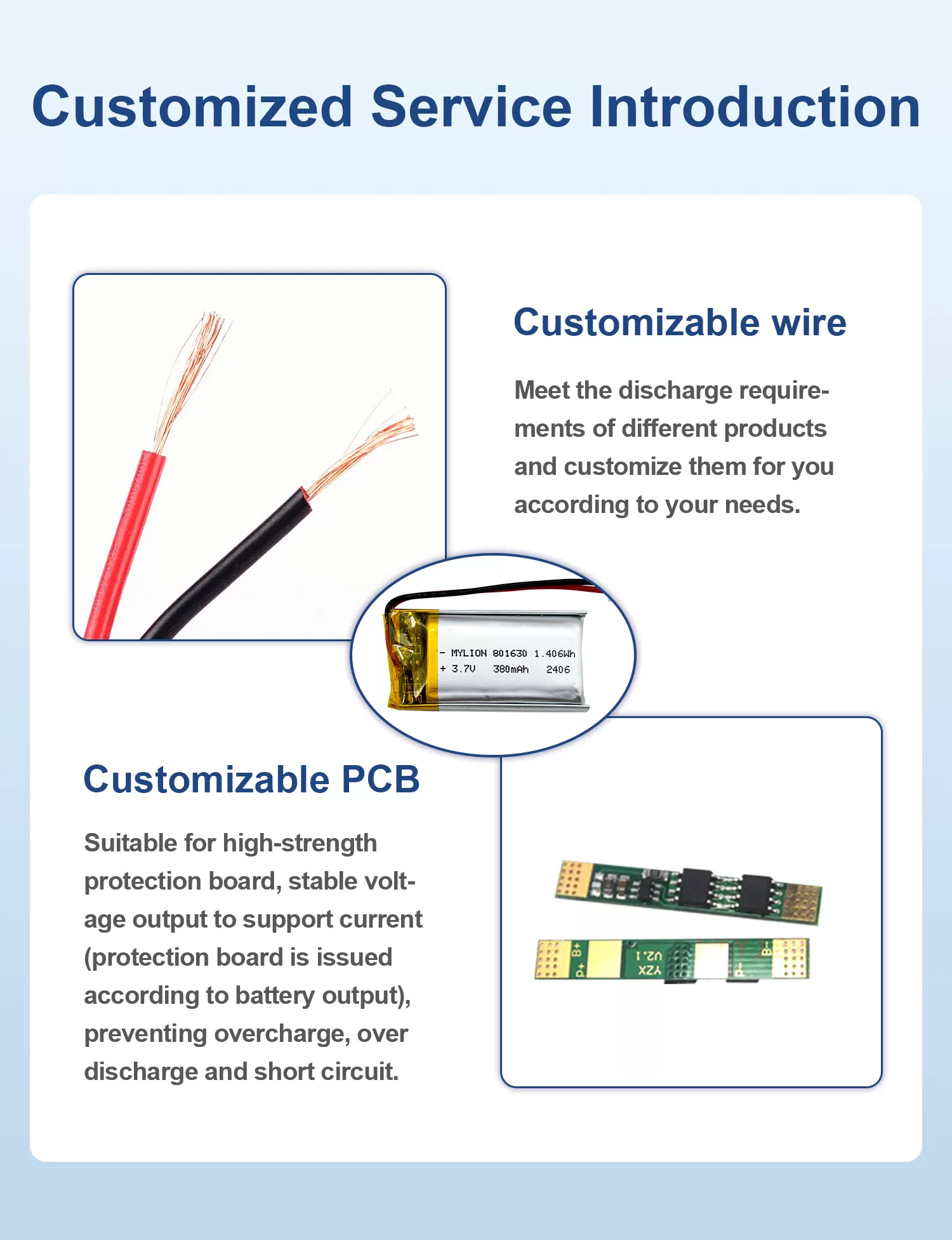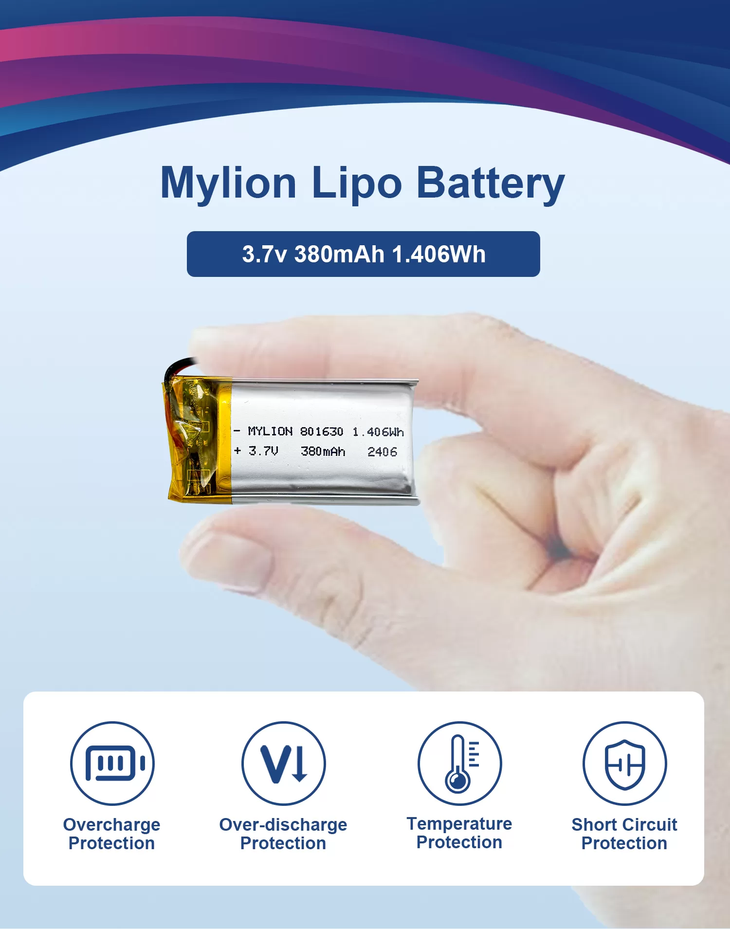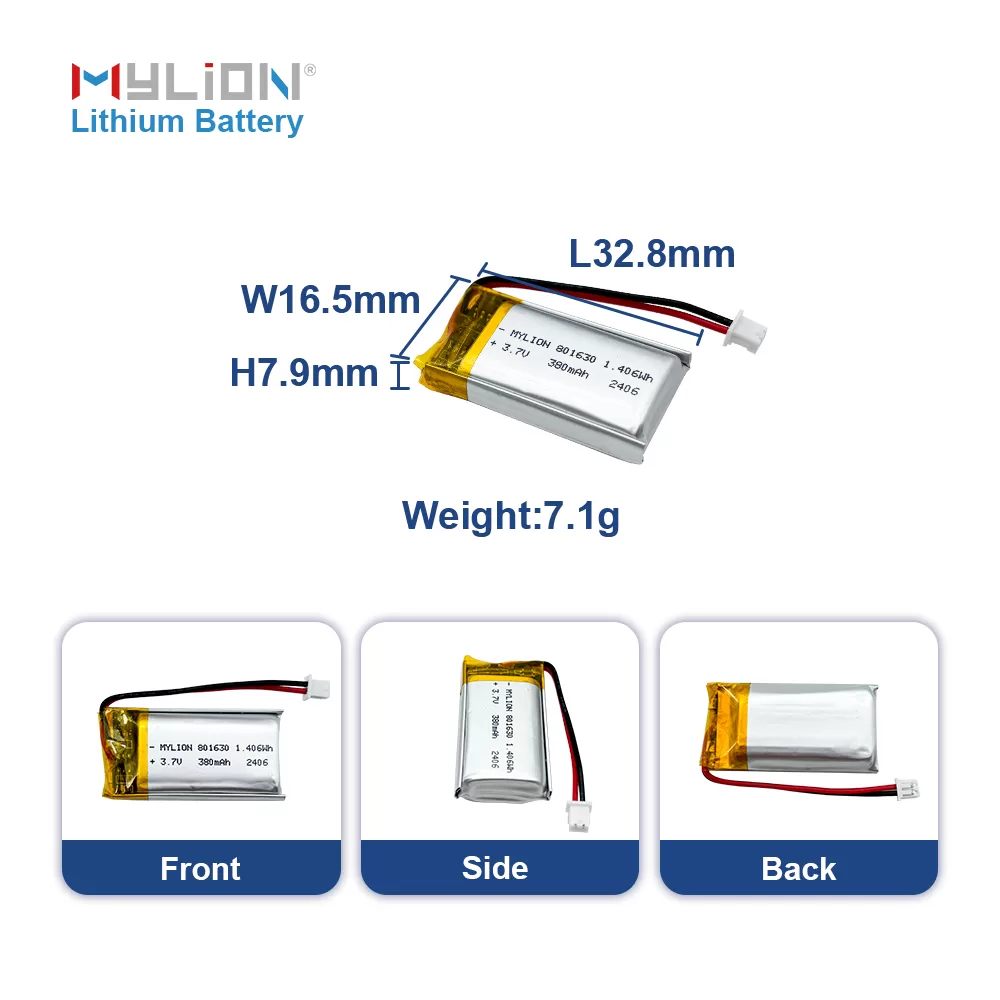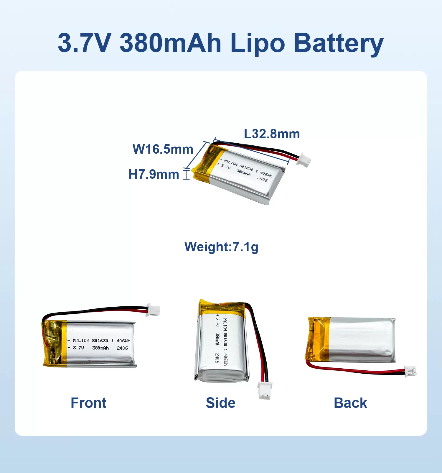 | Product name | Lithium polymer battery 3.7V 380mAh 801630 |