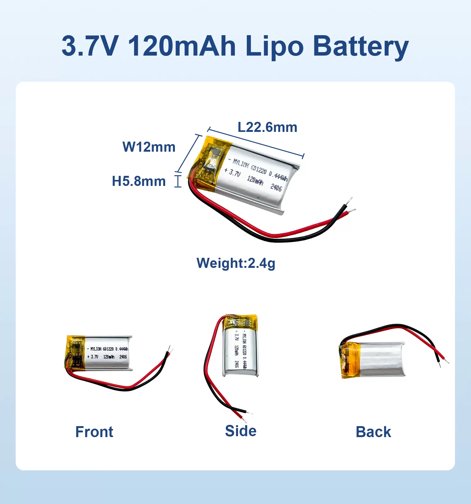 | Product name | Lithium polymer battery 3.7V 120mAh 601220 |