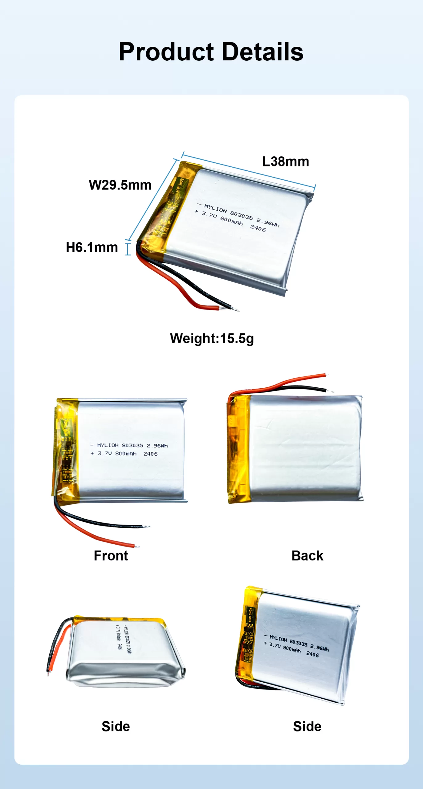 | Product name | Lithium polymer battery 3.7V 800mAh 5014125 |
