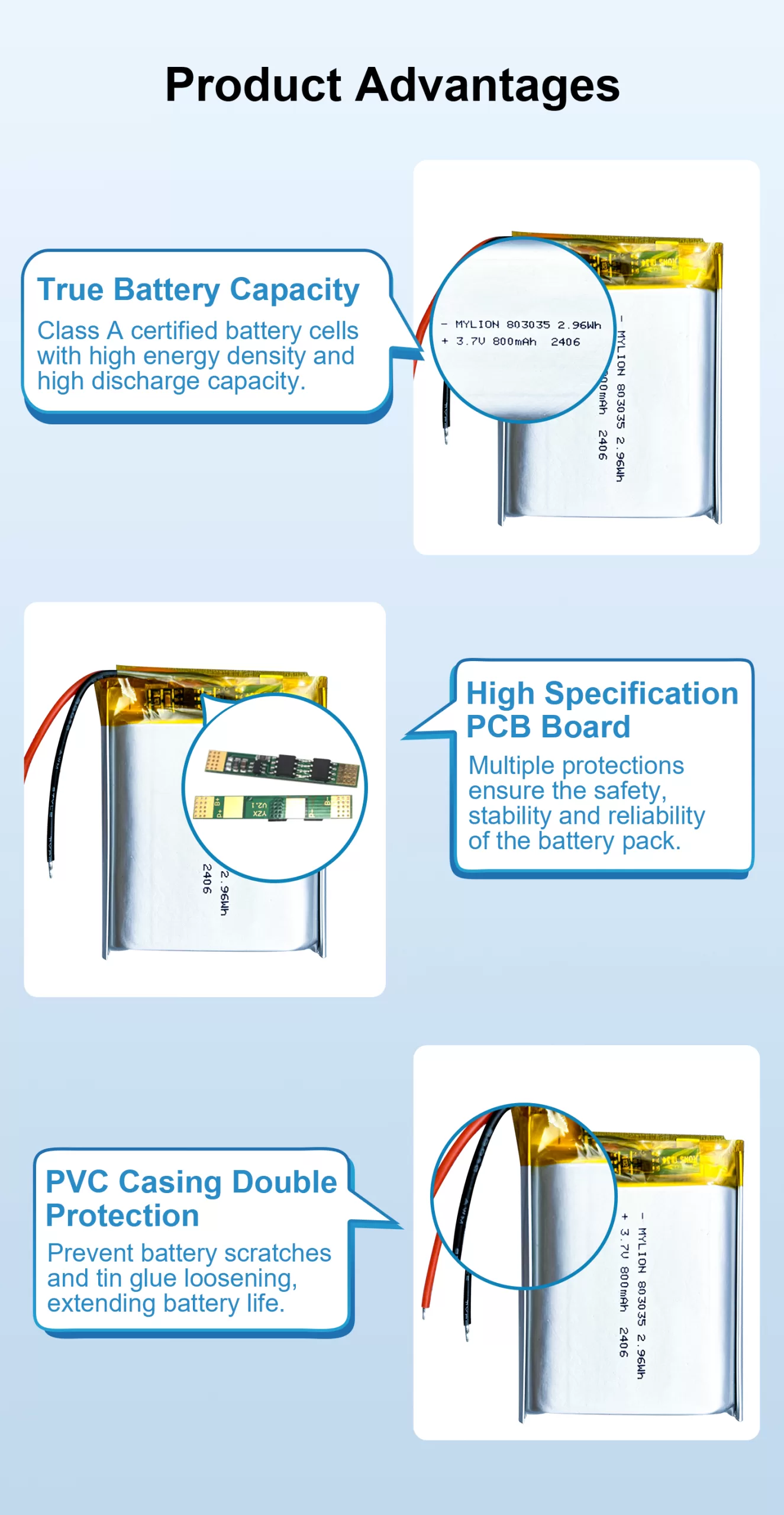 | Cycle life | standard charge&discharge capacity ≥80% C5mAh ,cycle life ≥600 |